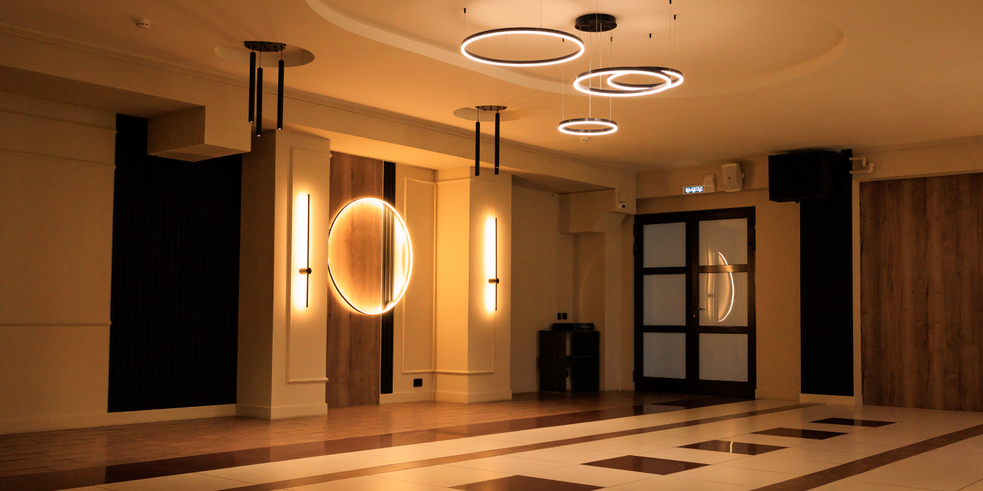Зал оснащен кондиционером, оборудован современным освещением, гардеробом и имеет отдельный выход на улицу.